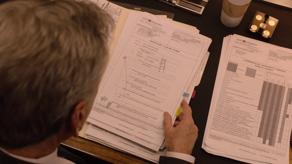 一个叫Majorie Green的女人带着吉娃娃狗(想及第二季里戈登·科尔的笑话)走在公寓过道上。女人手臂上挂着的钥匙丁零当啷地发出着各种响声,而钥匙正是本场戏的关键。滑稽的是,我们却花了接下来的五分钟时间和至少四个角色来找到它。这是一场精心安排的恶作剧,在短短几分钟内,我们听到了一连串的名字:Barney、Ruth、Hank、Harvey、Chip…… 除了Hank,其他人都只在对话中出现(以及一个失去身体的死者),Chip还没有电话,而他们中的几乎所有人都将消失在之后的情节中。