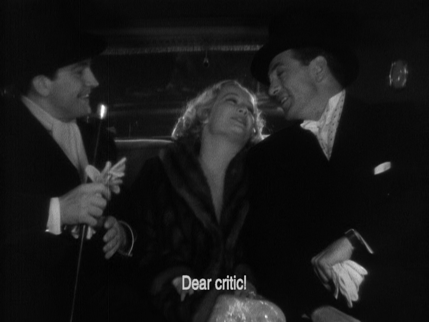 If the advertising goon Max Plunkett (Edward Everett Horton, a regular in Lubitsch’s band) was so disturbed by hearing his signature slogan on immorality (and monogamy) in Tom’s play, it is because the playwright sees it just as another funny line inherent of his comedic sensibility, and by doing so, stripping the words of meaning and context. Mr. Plunkett laughed anyway. It proved Max nothing, just as it didn’t prove anything back in Paris, but transformed only as a gesture to allow the two friends an opportunity to be open about their desire for Gilda, the as-always superb Miriam Hopkins, who is the synthesis of fluidity in Lubitsch’s cinema. Her occupation as a “commercial artist” thus is no material for sarcasm, rather a reaffirmation of her class and true alliance. That she is able to exploit her salesmanship to the benefits of our stubbornly artistic duo proves her strength, for she’s the one that’s more aware of advertising’s dangerous potential to weaken the art of criticism, or in Jean Douchet’s words, the art of loving, or “the art of loving the art of loving,” l’art d’aimer l’art d’aimer. Gilda critiques because she loves and cannot pick a side. That the superficial success of George’s painting or Tom’s theatrical career didn’t prevent their exile to China further confirms this.