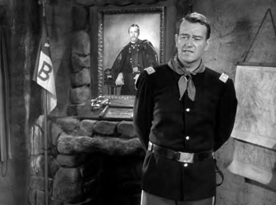 拍摄一部西部片,不仅仅意味着拍摄西部的神话印象——那些男人与马、枪手对决或拓荒远征的故事,同时也意味着电影人要面对脚下这片土地最原始的物质性,正如约翰·福特一次次地拍摄他亲切的纪念碑谷。也就是说,拍摄西部片也就是拍摄人类在土地上进行创造和建设的方式,这造就了一部充满矛盾的建国史,也造就了一部部展现生活和生产图景的作品,并将这些图景印刻成为神话般的图像。这就是福特在一部部影片中不断标注的,关于历史和传说之间的永恒疑问,正如《双虎屠龙》反讽性的结尾所言:“在事实和传说之间,还是印下传说吧。” 福特的辩证在1948年的《要塞风云》中已然现身,改编自北美印第安战争之中知名的小大角战役(1876年),在影片中,亨利·方达饰演的来自“东部文明”的将领,不顾要塞当地的骑兵军官(即便饰演他的约翰·韦恩是公认的种族主义者)阻拦,执意进攻火力强大的苏族印第安部落,最终白人部队遭到全灭。这悲剧性的结局之所以令人沉痛,源于福特赋予人物日常的注视,因为他更感兴趣的是军营中的起居,他拍摄男人和女人们如何在荒芜之地的军营建造出属于自己的“文明”,通过仪式、饮食、家庭和友爱;而另一边,福特让我们去想象“他者”的生活,但印第安人有自己的法则,不允许被轻易观看,这生成了他们的伟岸的影像——几乎和云彩、山丘与尘土并置在一起的形象。如果历史上的宏大事件注定有流入传说的宿命,电影人能抓住的事实便是令宏大产生的日常姿态。在这部影史上少见的为印第安人的命运摇旗呐喊的作品中,福特之所以能给予“他者”以神圣的面貌,是因为他同时足够珍视自己民族的生活,并抱憾于它的表里不一。