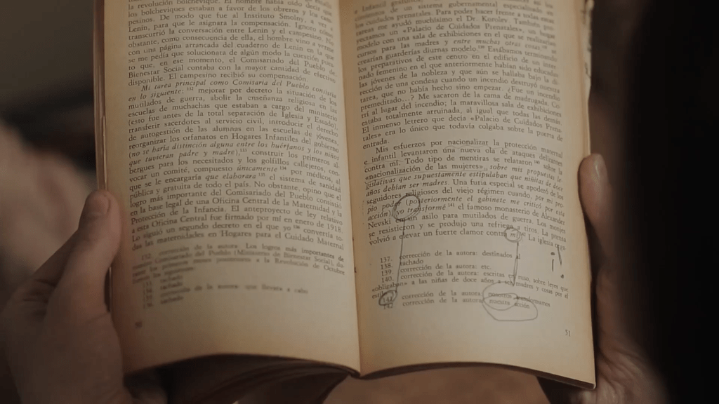 我们为什么会说,潘佩罗小组拍“可以阅读”的电影?这是因为阅读首先是一种观看,是人类与一本书组合起的动作,而一本好书具有珍贵的上镜性——换句话说,首先是寻找书的电影,拍摄书的电影。在《如果在冬夜,一个旅人》(Se una notte d’inverno un viaggiatore)中,伊塔洛·卡尔维诺书写了寻找一本书的乐趣,书写了我们如何在一排排书架之间沉迷,当书本尚未被启封,尚未被观看,尚未被阅读。在这本“关于寻找一本小说”的小说的序言中,意大利作家写道:“现在你坐在这里,将要向着第一页出击”,但是,在我们的掌心与双眼之前,难道不总是书本首先向我们出击的吗?[2] 我们首先端详着书封,然后接触到了纸张的质地、字体的差异、目录上的密语…… 这些组成了我们的第一张地图。紧接着,一块巨大的语言布毯。我们在其书页间漫游,尽管可能会迷路,但正如某位博尔赫斯所言,“一本书中最重要的东西是作者的语调,是作者的声音,这个声音走向我们。”[3] 语调(Entonación)——亦可被译为“吟诵”或“抑扬之声”——在一切的伟大作品中存在,并且总是超越了所谓“作者性”的分类学,因为通过这个声音,作品直接展示写作的工作,写作的行动,还有我们对书的阅读。这种在电影内作为动作的阅读,和“阐释”电影完全相反。这位阿根廷短篇小说家、诗人和评论家,曾用赫拉克利特的谚语“人不会两次踏进同一条河中”来形容阅读的动作——这个想法对于电影创作来说同样尤其巧妙,因为没有什么比这句话所描述的图像更加不可能被拍摄,因为它正是“画外”存在的直接证据,它正是时间本身:怎么可能去拍摄一条“新的水流”?矛盾的是,这又是一个极为容易被拍摄的图像,因为从来没有两条镜头能够真的一模一样。但我们不会两次踏进同一条河中,正如“画外”无法被拍摄,而这河流与书页之间的,读者与作者之间的,以及经验与历史之间的“画外”,便是我们这群电影人最钟爱的主题。
