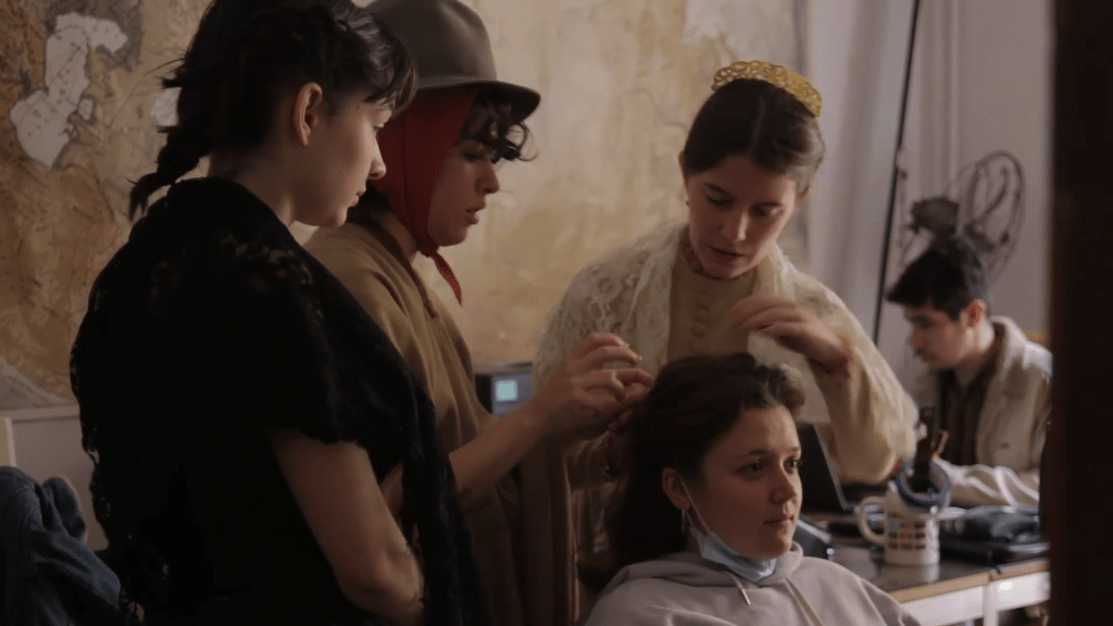 “我当然承认利纳斯电影中存在某种男性同盟,然而同样也有来自女性同盟的平衡,比如Piel de Lava她们。但再说回《科西尼》,要我说恰恰是影片后半段女演员们的登场让它新增了最生动的声部,当你看着这一群女演员们穿着戏服,互相设计对方的发型,这是很美妙的一个场景,女演员们之间的关系和作者意志完全无关,我们只是看着她们在准备演出,但却完全轻盈地让我们想象了她们或将扮演的角色。电影也是以一位女性剪辑师的目光结束的,显然利纳斯想要她们的声音。”