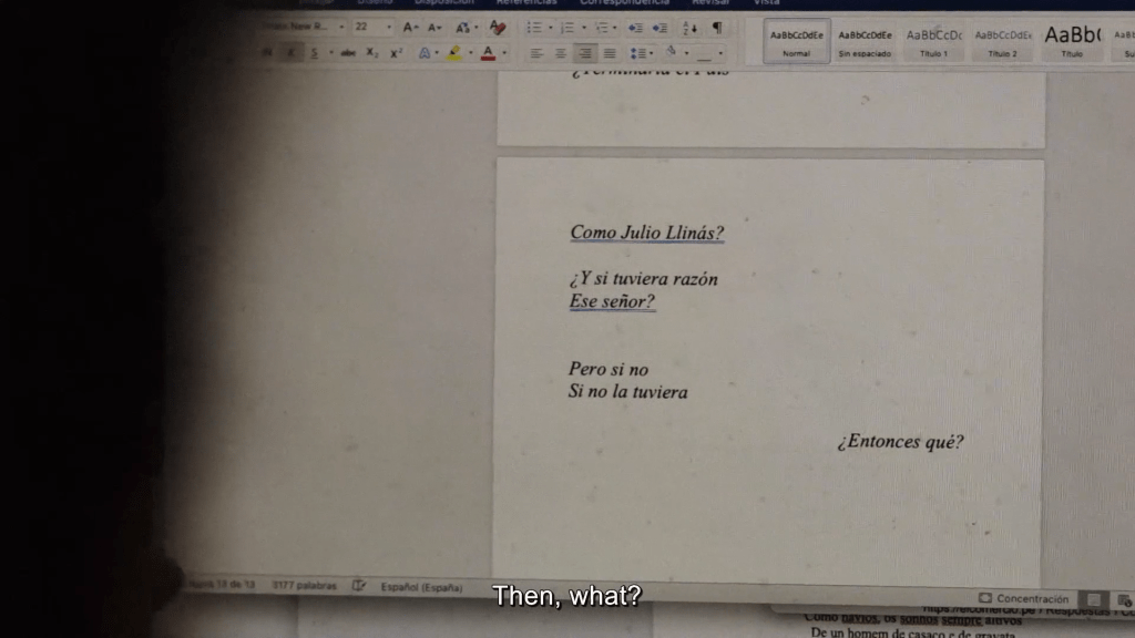 “要我说,《卡尔林多·泰塔》是潘佩罗小组最孤独的电影,也是第一部情节剧,而且要我说的话,整部电影最情节剧的段落,就是利纳斯兴奋地看着他父亲在那本小书里留下的话,认真品读它,就好像是在父亲描写他朋友的文字里,寻找到了对自己的这部电影的辩护!我给你读一段: