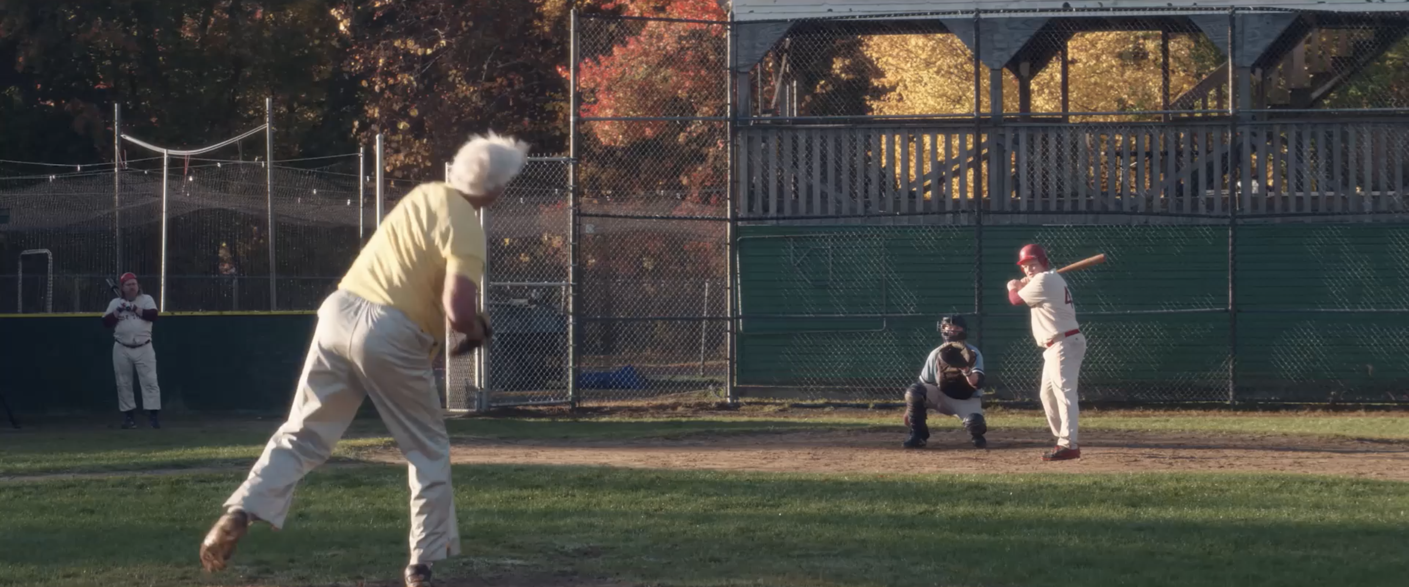If the mountainous terrain of Topology of Siren harvests mysteries in the blind spot of our vision, Eephus would reach the same abstraction in the plain of a baseball field, in the same way that James Benning’s films use the horizontal line as the starting point of his landscape fictions – see his The United States of America (2022), where Benning creates portraits for each fifty states of the country, each in one shot, in an extraordinary and deceptively simple measure. Carson Lund’s film, co-written by Nate Fisher and Basta (who has shot his directorial debut, Raccoon), culminated all Omnes Films’ collective interests in a concentrated vision. Set in a Massachusetts suburb, the film chronicles two teams of men playing one last game of amateur baseball on “Soldiers Field,” soon to be demolished to build a middle school, combining portraits of a pastime tradition to a somewhat more perplexing series of movements, accessible only by an understanding of its secret rules. But granted, even an innocent viewer like this author, without ever playing or watching the sport, could appreciate the intimate bondage and the rhythmic movement displayed in these men – wins or loses means nothing here. Lund, not only an active film critic who envisioned here his own Goodbye, Dragon Inn (2003) but also a league baseball player, is not only precise in his direction/coaching but is also seeing the field through other eyes, often a critique of the image itself. But the film, more than anything, accompanies its players in time.