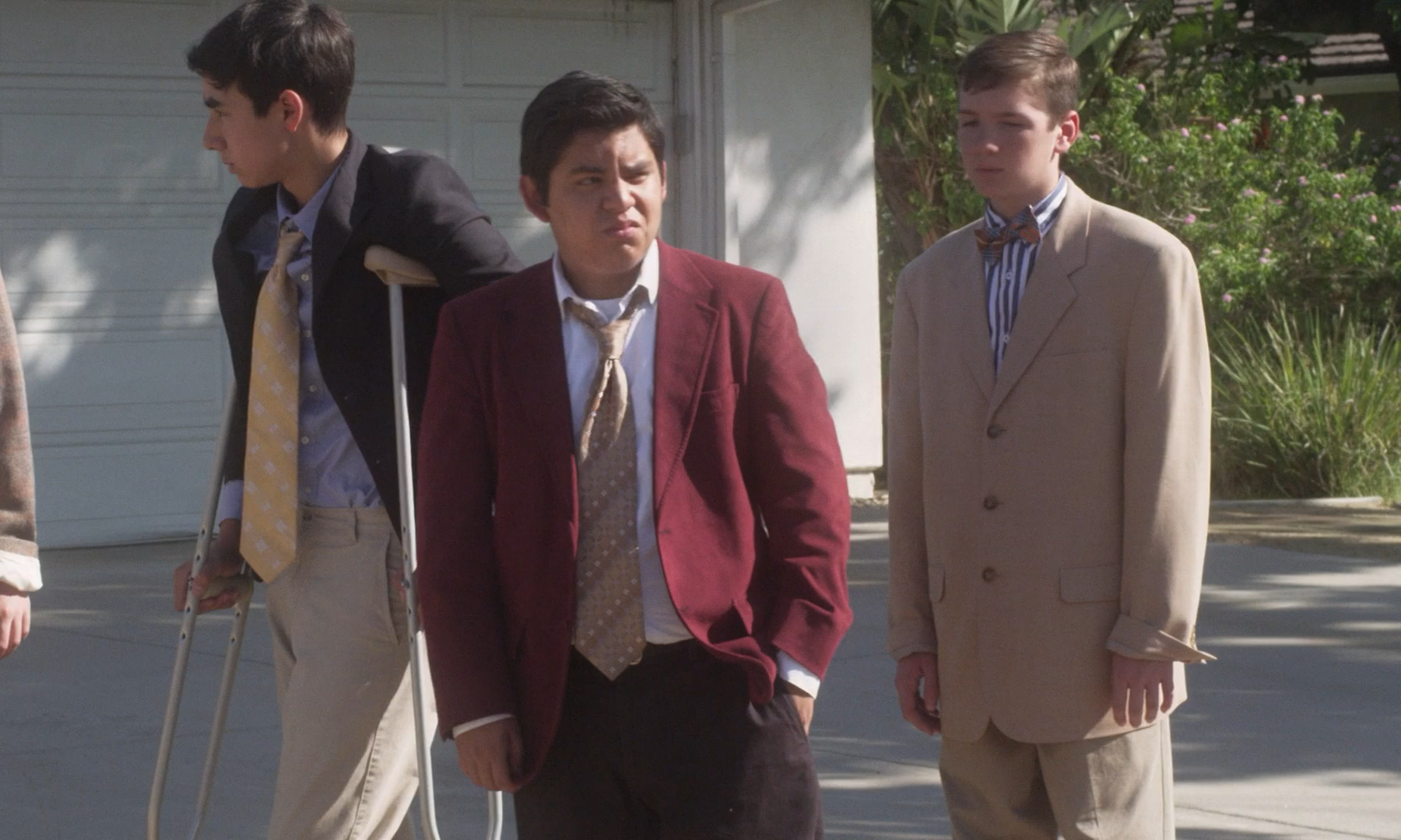 Ham on Rye (2019), the collective’s first opus, directed by Taormina and shot by Lund, riffs on the image of the all-too-familiar tradition of the High School prom, where young men and women, as if properly dressed maybe for the first time in their lives, walking or driving with their friends down the small town road to converge at the celebration. The title itself, a rhyme perfectly quotidian but slightly perplexing, more or less sums up the quality of the film. As always in these scenarios, anticipation is high with these rendezvouses, with the desire to play an adult, the prospect of a date, or the nostalgia for the care-free youth. But Taormina favors these gestures slightly different; he aims to capture a feeling much more archetypal without the basis of a complete narrative, from a lighter being lit, an oversized suit, a half-eaten sandwich to those long walk-and-talks between friends that the filmmakers delicately stage.