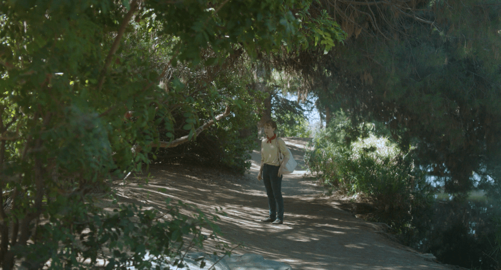 If the secrets Taormina seeks lie in the fabric of everyday events, his two other friends go to stranger places. When Taormina’s film transforms a Californian small town into a total image of the American suburb, Jonathan Davies makes Los Angeles utterly unrecognizable with his debut feature, Topology of Siren (2021), also photographed by Lund. A fellow musician who formed with Taormina the drone band Fjords, Davies’ film is a wriggling yet calming mystery that firmly searches what it desires, tracing back to the glorious era of the analog. Set in a hillside area around the Hollywood-land, Cas, played by documentary filmmaker Courtney Stephens, a sound engineer staying in her aunt’s house, accidentally discovers inside an 18th-century hurdy-gurdy a bundle of mini-tapes containing enigmatic recordings. In a sense, Davies’ film is a sister to Memoria (2021) by Apichatpong Weerasethakul (the two films premiered only a week apart), both seeking a history of the world through the instruments we have built, and both films listening spaces for the audience, sometimes directly “toning” the film using its apparatus, as its wall-to-wall soundscape conjures ancient objects and mythic bodies. The film, if anything, is reminiscent of baroque-era harpsichords that hide paintings inside their lids or books that hide secret correspondences, as seen in another game of mysteries, Trenque Lauquen (2022) by Laura Citarella.