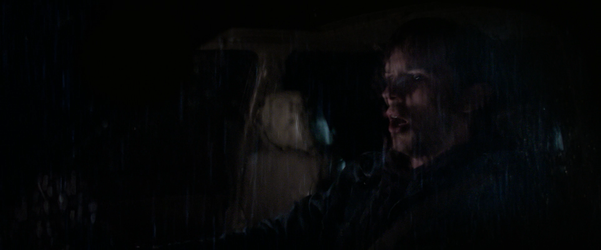 这也是命运找到他的时刻,这些光洁的表面即将面对一个最“不完美”的瞬间:上进的丈夫被暴露为一位“完美”的杀人犯,因为他的对面坐着一位更完美的嫌疑人。的确,伊斯特伍德对完美的定义,总是围绕着一个绝对清晰的图像,它明确的情感似是有些司空见惯;但不,这只是因为那些“不完美”的东西有着绝对的混沌,它如影片中那场夸张的暴风雨般袭来,令我们什么也看不见,这也是它的恐怖之处。我们可以快速地想象影片中张牙舞爪的闪回段落,伴随着主角的脑内噪音,以及那个模糊的黑色图像:男主角与他的丰田车被淹没在黑夜的水雾中,似乎只留下了自身的轮廓。