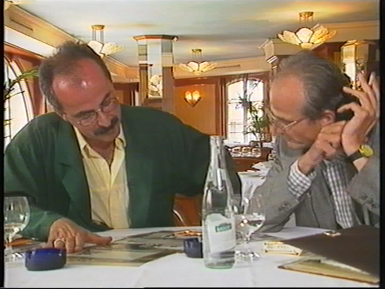 无论如何,这给了我一些能在开头展示的东西,好在我只需要文字。在试图构思这第九篇年度观影总结之序时,除了选择影片之外,有几部短小的作品不断回到的脑海中。第一部作品,1993年,《南与北的对话》(Conversation nord-sud),是塞尔日·达内和巴勒斯坦历史学家埃利亚斯·桑巴尔共同出镜的一部电视纪录片(感谢友邻Moutana今年热情赠送的KG邀请)。这部短片的形式令人想到让·厄斯塔什在他生命最后几年拍摄的一部神秘短片《阿历克斯的照片》:似乎什么别的都没有,只有两个人坐在一张桌面前,各自为对方展示一些相片。在日常中,朋友之间互发照片似乎是最司空见惯的事,但在这几部电影清晰的拍摄面前,我顿然发觉这是一种最好的展示,尽管对象只是一些静止的图片。我想到自己曾经也拍摄过类似的场景,但我仅仅拍摄了对相片的观看,却并没有拍到展示的动作——或许展示了一些,但显然还不够充分,这让段落成为了自说自话。但传递,真正的对话——将一幅你珍爱的相片中不为人知的东西指给对方,并让对方用自己收藏的相片来回馈于你的展示——达内和桑巴尔之间的分享,以及二人互相交换的视角,我认为一定是电影最珍贵的东西之一,尽管作为电影写作者的达内自诩从不喜欢创作图像,而桑巴尔则与充满死亡的图像以及图像的消失相抗衡。