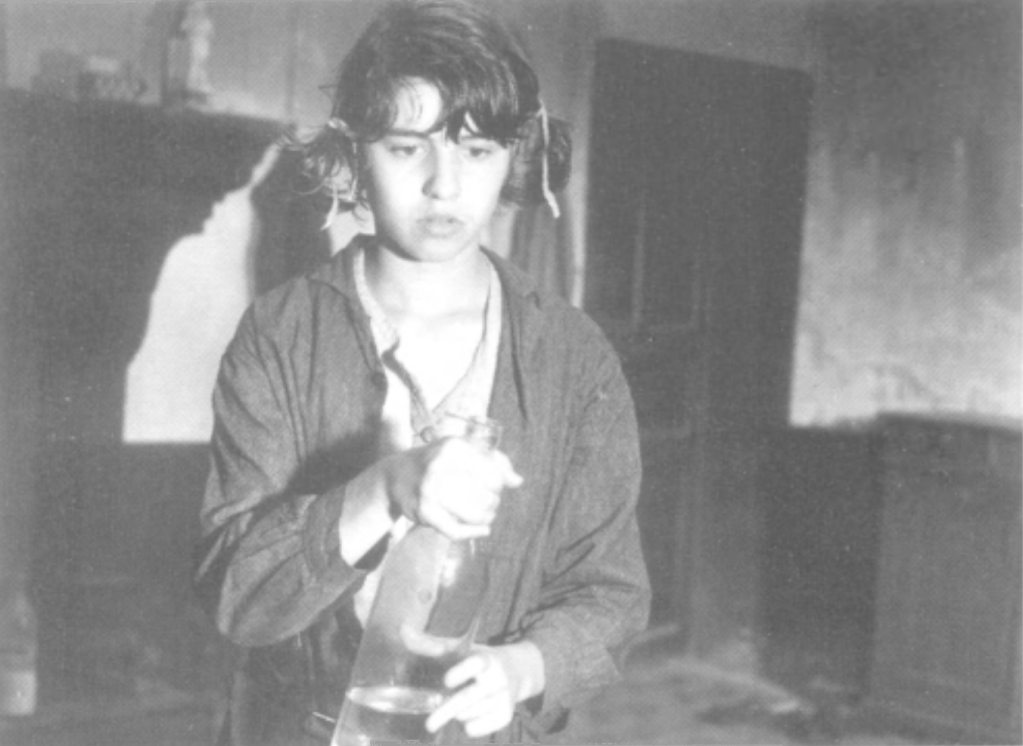 于是,来自这种换置的暴力,将神圣性跌落至人间,允许风格上的摹仿跨过原型自身,找到了一种超越致敬与忠诚的形式。创造性的细节比比皆是。例如,何西(Dionys Mascolo 饰)这个人物很长一段时间都被呈现为一位讲着蹩脚法语的西班牙工人。但是,当他张嘴说话时,听不见一丝外国口音的痕迹:如布列松,精确性要彻底地背离“普遍经验事实”4(尼采)。这一点同样适用于英格丽·卡文(Ingrid Caven),她一反常态地饰演了一位法国农村妇女,在影片上映时饱受评论诟病。抑或是,在这部从不遮掩自身自传性的影片中(一如厄斯塔什的所有作品),作者突然间插入一段从另一个人的生活中偷窃来的事件。在爬树的段落中,影片重新排演了米歇尔·莱里斯(Michel Leiris)在《成人之年》(L’Âge d’homme, 1946)一书中描述的关于“第一次勃起”的记忆。5 如同承认自身那文学的、次等的、假借的本质,性行为被一种更暴力的方法揭示,因为它允许记忆的复杂性被暗中确认(它同时是感觉、场景、场景之复现、谎言和质疑),并将不属于自己的东西强行植入到虚构的。 与此同时,在剪辑层面也有一例:丹尼尔在两个不同的机位中重复一句台词(“在我读过的一本书里……”),完全背离现实主义,既让我们联想至戈达尔,同时也能想到布列松一句格言的字面含义:“从(一个画面、一个声音的)重复中所能获取的所有效果。”6