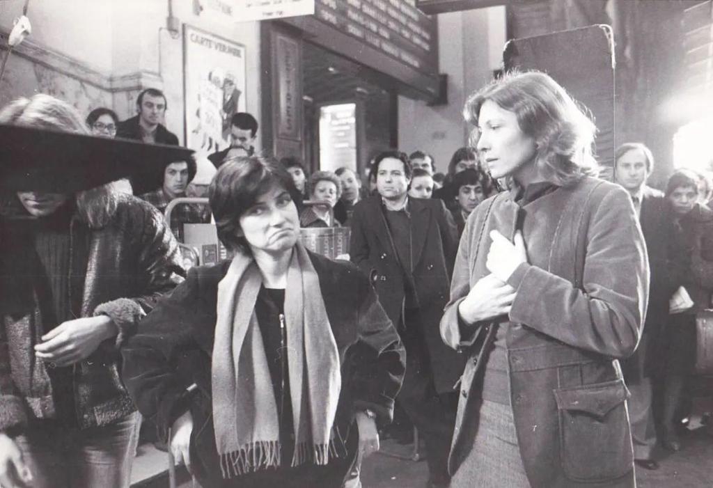 有趣的是,阿克曼在选择饰演安娜的女演员时,参考了希区柯克式的金发女人形象,如她在《手册》中对卡罗利娜·尚珀蒂埃(Caroline Champetier)所说的:“起初我想要一名棕发女孩,我就看了很多棕色头发的,我意识到在内心深处我想要的是希区柯克电影里的那种角色,一位希区柯克式女人。我想,如果一开始她的脸很光滑,并非一切都已然铭刻在她脸上,那会更有力量。”6 一张片场照饶有趣味地拍摄了导演和演员的差异,黑发的阿克曼个头偏矮,脸上挂着古怪的笑容,克莱芒则和电影中一样,保持了整洁的静止。