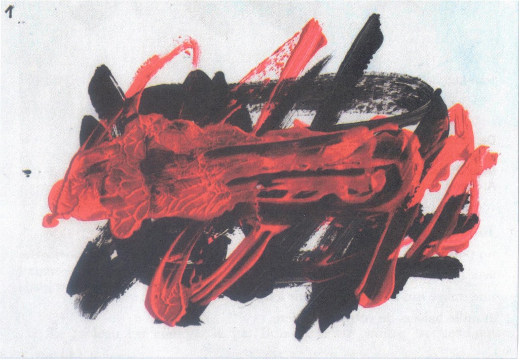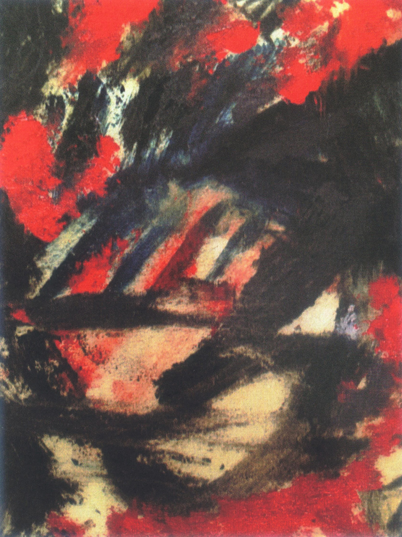 在所有赋予这些图像必要性的前提中,这两幅红与黑的水粉画或许溢满着一出关于精确性的疯狂故事,允许它们得以扩展、自主、以及复现。戈达尔的这些水粉画延续了他为《剧本》准备的笔记本(2020年7月)中类似的黑色水粉画。无疑,它们也在涂改的动作和抽象绘画之间确立了一种简洁且狂喜的聚合。涂改,曾经作为工作中的技术痕迹,在戈达尔从2010至2020年代的电影和作品中,愈加频繁地变成了一种装饰性的动机;至于抽象绘画,这一次,我们很难不从最常见的符号角度去理解它:红色即是“热望”(“ardent espoir”)的胜利。