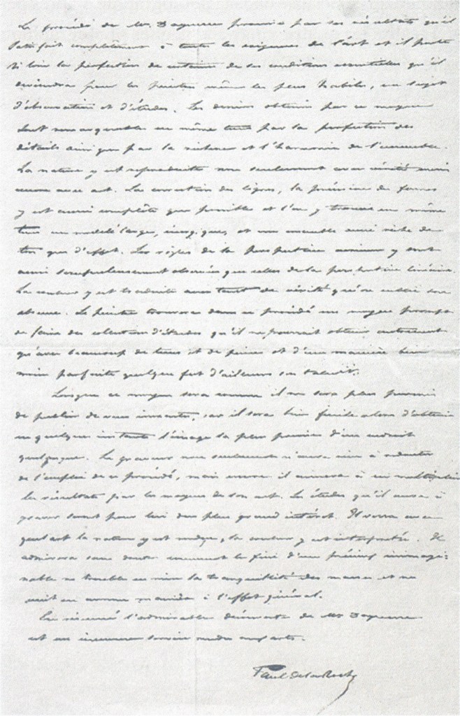 至于德拉罗什写给阿拉戈的备忘录,它的结尾如下:“总而言之,达盖尔先生令人敬佩的发现是一项对艺术的重大贡献。”