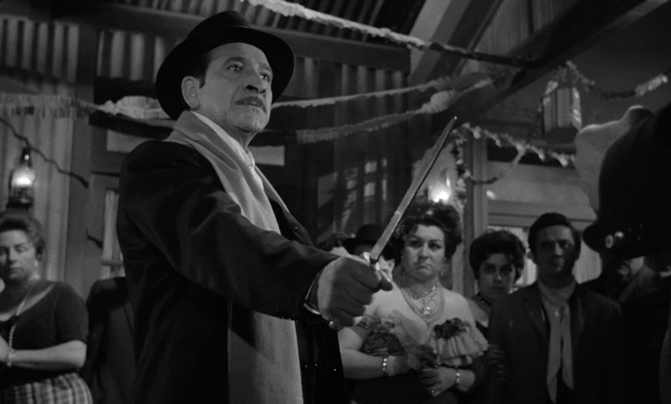 在这些影片中,观众很快能寻找到一个共同的元素,即缺席之人的存在,而追寻的方式则是讲述(复述)、旅行以及奏乐。在《玫瑰角的汉子》(El hombre de la esquina rosada, 1962)和《罗绍拉在十点钟》(Rosaura a las diez, 1958)这两部经典时期作品中,有一些特定角色始终“活”在他人的等待中,死神为双方都布下了帘幕,但二者保留神秘感的方式有显著的不同。雷内·穆吉卡对博尔赫斯短篇的改编,比马里奥·索菲奇的卡罗尔·里德式仿作走得更远,即走到了影史的源头,用近乎卢米埃尔影片的作风,拍摄了20世纪初期布宜诺斯艾利斯的风俗(博尔赫斯称原作短篇受到了“冯·斯登堡早期电影”的影响,而电影观众显然也能看到布努埃尔和让·雷诺阿的影子)。电影为那篇短小的文字所加入的,并非更多的情节曲折,而是一连串对游戏的刻画,如观看拔河比赛一般,体现在那些舞步停顿或决斗之前的张力之中,不仅接近了原作者的虚构作品,还有他就自己生活的城市所写下的“纪实”文字,其内容并不比前者缺少戏剧性。